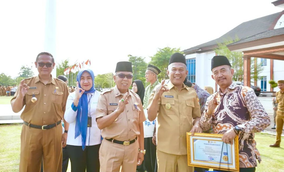 TEBARKAN – MUSI RAWAS – Wakil Bupati Musi Rawas H Suprayitno pimpin Apel Pagi Bersama dan Penyerahan Bingkisan Bagi Pegawai Negeri Sipil yang Memasuki Purna Tugas TMT 1 Oktober 2025 di Lingkungan Pemerintah Kabupaten Musi Rawas, bertempat di Halaman Kantor Bupati Kabupaten Musi Rawas, Senin (6/10/2025).
