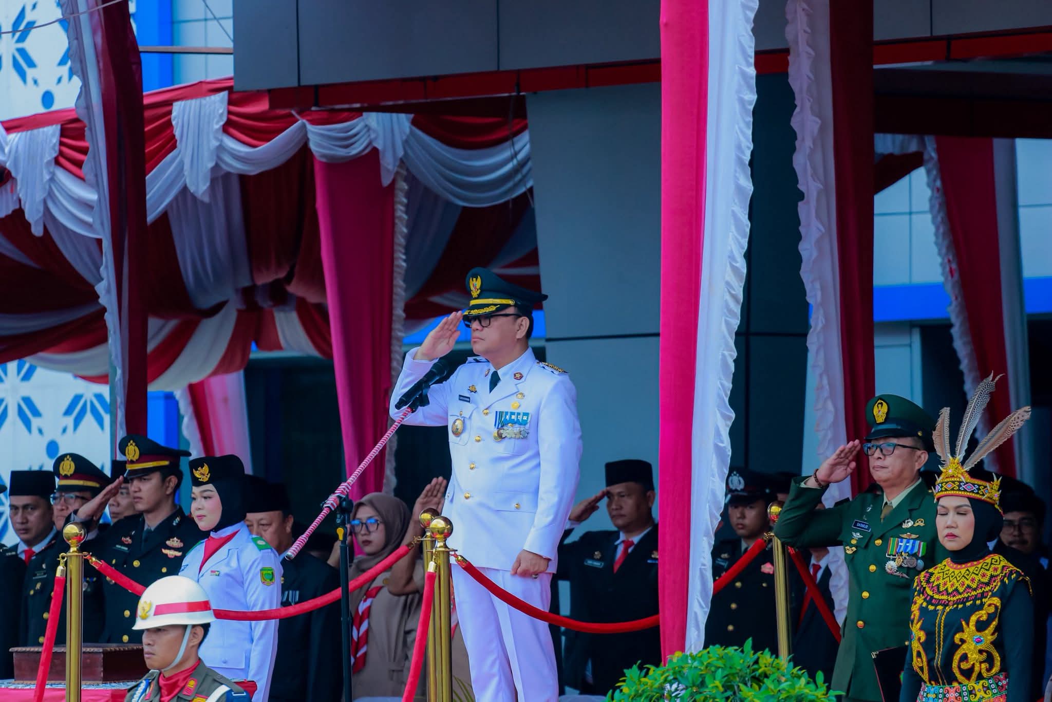 Mengusung tema “Terus Melaju untuk Indonesia Maju”, upacara berlangsung penuh khidmat dan sarat nilai-nilai patriotisme. Kegiatan ini turut diikuti oleh unsur Forkopimda, jajaran ASN, anggota TNI/Polri, pelajar, organisasi kepemudaan, serta berbagai elemen masyarakat.