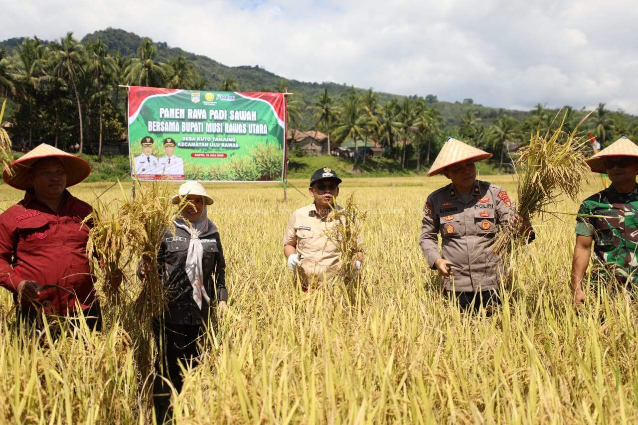 TEBARKAN – MURATARA – Pemerintah Kabupaten Musi Rawas Utara (Pemkab Muratara) menggelar kegiatan Panen Raya Padi di Desa Kuto Tanjung, Kecamatan Ulu Rawas, sebagai bentuk dukungan nyata terhadap ketahanan pangan daerah dan peningkatan kesejahteraan petani.