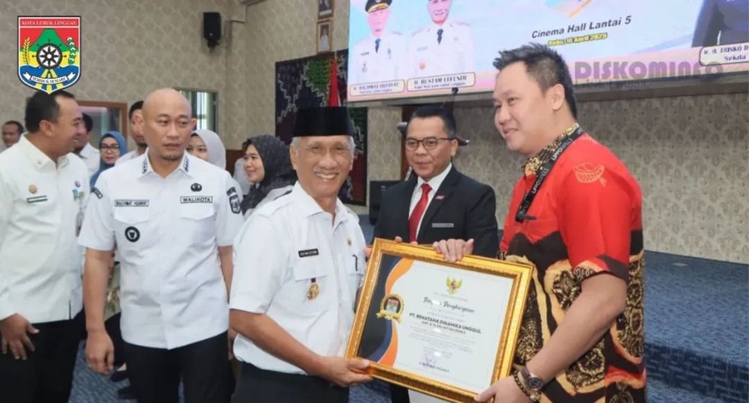 TEBARKAN – LUBUKLINGGAU –Wali Kota Lubuklinggau, H Rachmat Hidayat menghadiri kegiatan penyerahan Surat Pemberitahuan Pajak Terhutang (SPPT) PBB-P2 kepada seluruh camat dan lurah se-Kota Lubuk Linggau yang dilaksanakan di Cinema Hall Bukit Sulap Lantai 5 Perkantoran Pemkot Lubuklinggau, Rabu (16/4/2025).