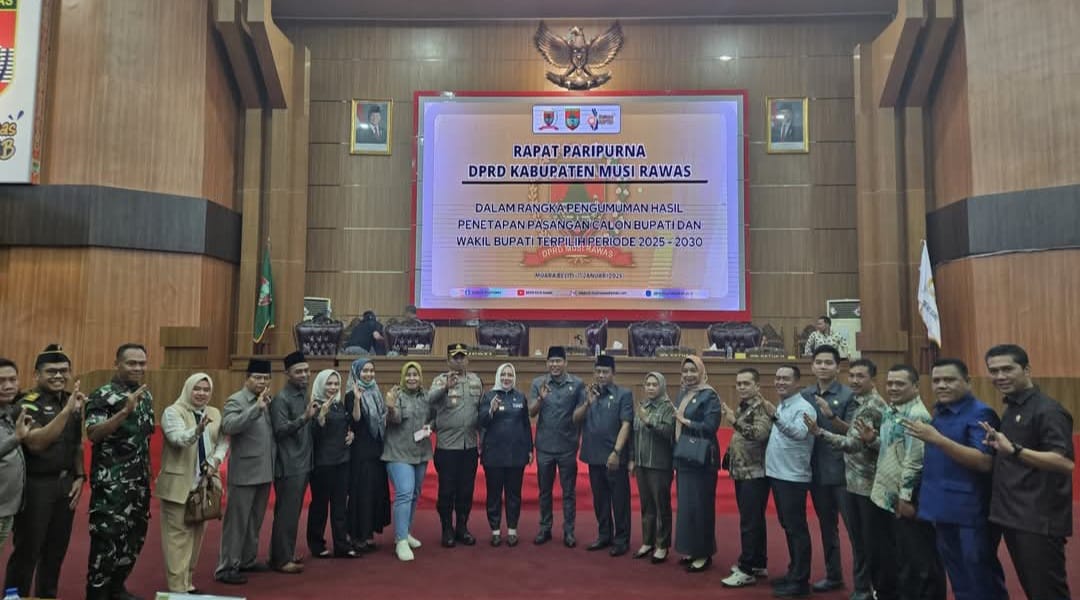 Dijelaskan Ketua DPRD Musi Rawas berdasarkan hasil pleno KPU Musi Rawas yang disampaikan kepada DPRD Musi Rawas, KPU Musi Rawas menetapkan pasangan Hj Ratna Machmud dan H Suprayitno sebagai pasangan calon Bupati dan Wakil Bupati Musi Rawas terpilih periode 2025-2030.