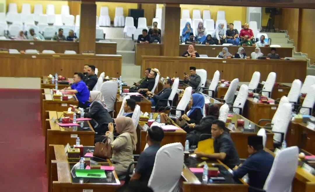 Paripurna dipimpin langsung oleh Ketua DPRD Firdaus Cik Olah, SE, M. IKom didampingi Waka II Yani Yandika Saputra, S.Farm.l dan dihadiri para anggota DPRD.