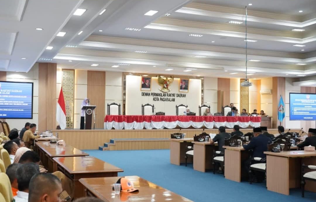 Rapat Paripurna ini dipimpin oleh Ketua DPRD Kota Pagar Alam Hj. Jenni Shandiyah, didampingi Wakil Ketua I Hj. Dessy Siska dan Wakil Ketua II H. Syahrol Effendy serta diikuti oleh Anggota DPRD Kota Pagar Alam.