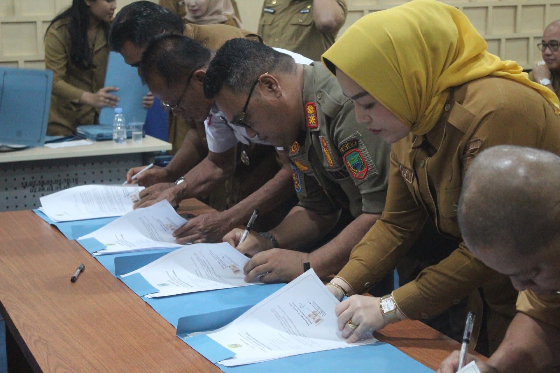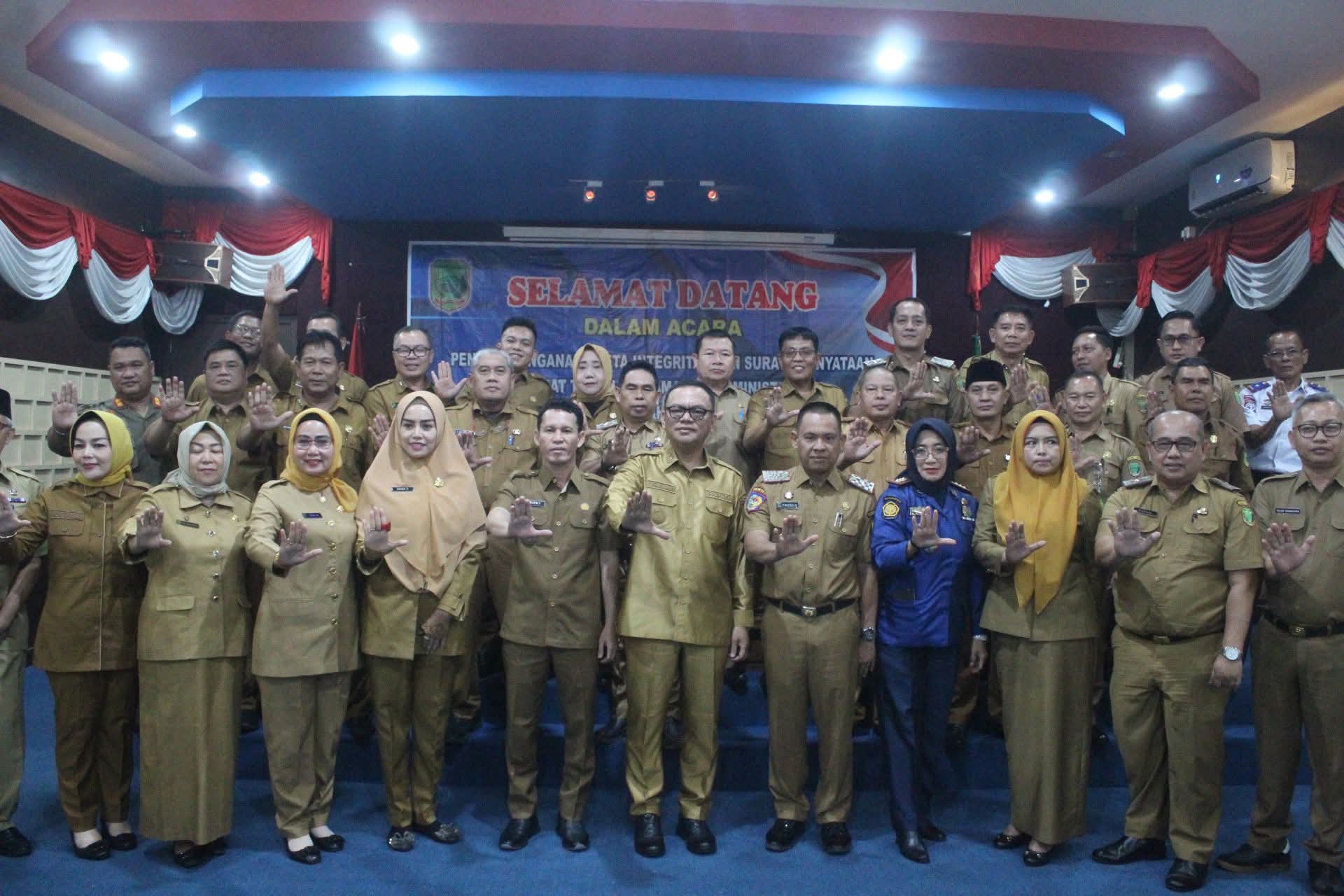 TEBARKAN – EMPAT LAWANG – Seluruh pejabat di lingkungan Pemerintah Kabupaten (Pemkab) Empat Lawang tanda tangani Fakta Integritas, di ruang rapat Madani Setda Empat Lawang.