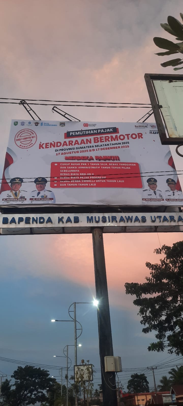 membayar pajak kendaraan bermotor merupakan kewajiban bagi setiap pemilik kendaraan sekaligus wujud kepatuhan hukum dan tanggung jawab sosial kepada daerah.dengan begitu, PAD Kabupaten Muratara bisa terus meningkat guna mendukung pembangunan daerah,dan kami telah memasang spanduk baleho pengumuman pemutihan pajak kerendaraan bermotor,ujarnya.