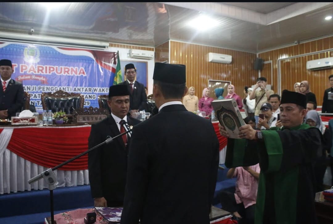 EMPAT LAWANG – TEBARKAN – Rapat Paripurna Dewan Perwakilan Rakyat Daerah (DPRD) Kabupaten Empat Lawang dengan agenda pengambilan Sumpah/Janji Pengganti Antar Waktu (PAW) anggota DPRD sisa masa jabatan 2024-2029, pada Rabu (22/1/2025).