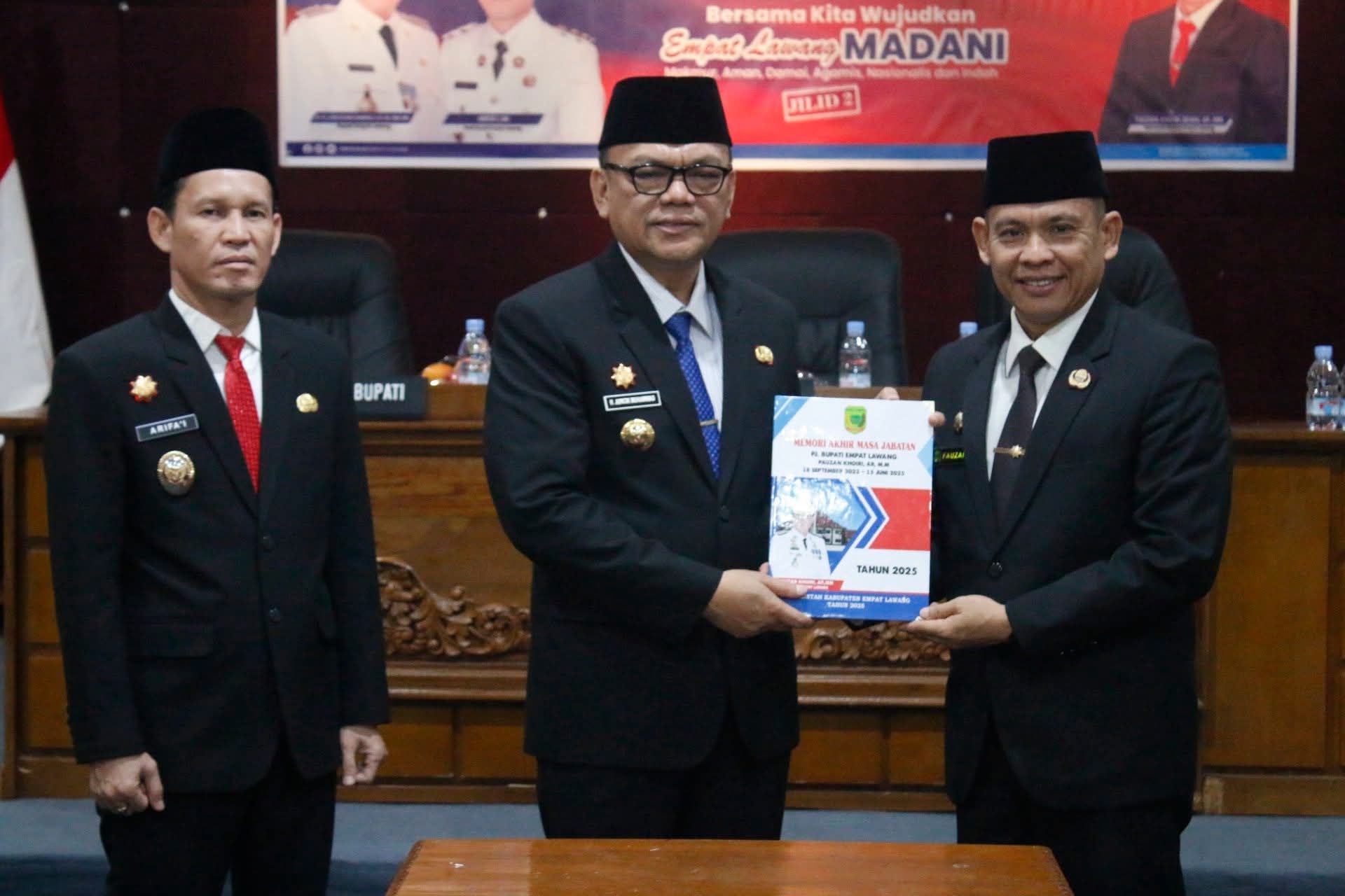 Di akhir acara, Bupati Joncik juga menyampaikan apresiasi khusus kepada Sekretaris Daerah yang sekaligus Penjabat Bupati Empat Lawang periode 2023–2025.