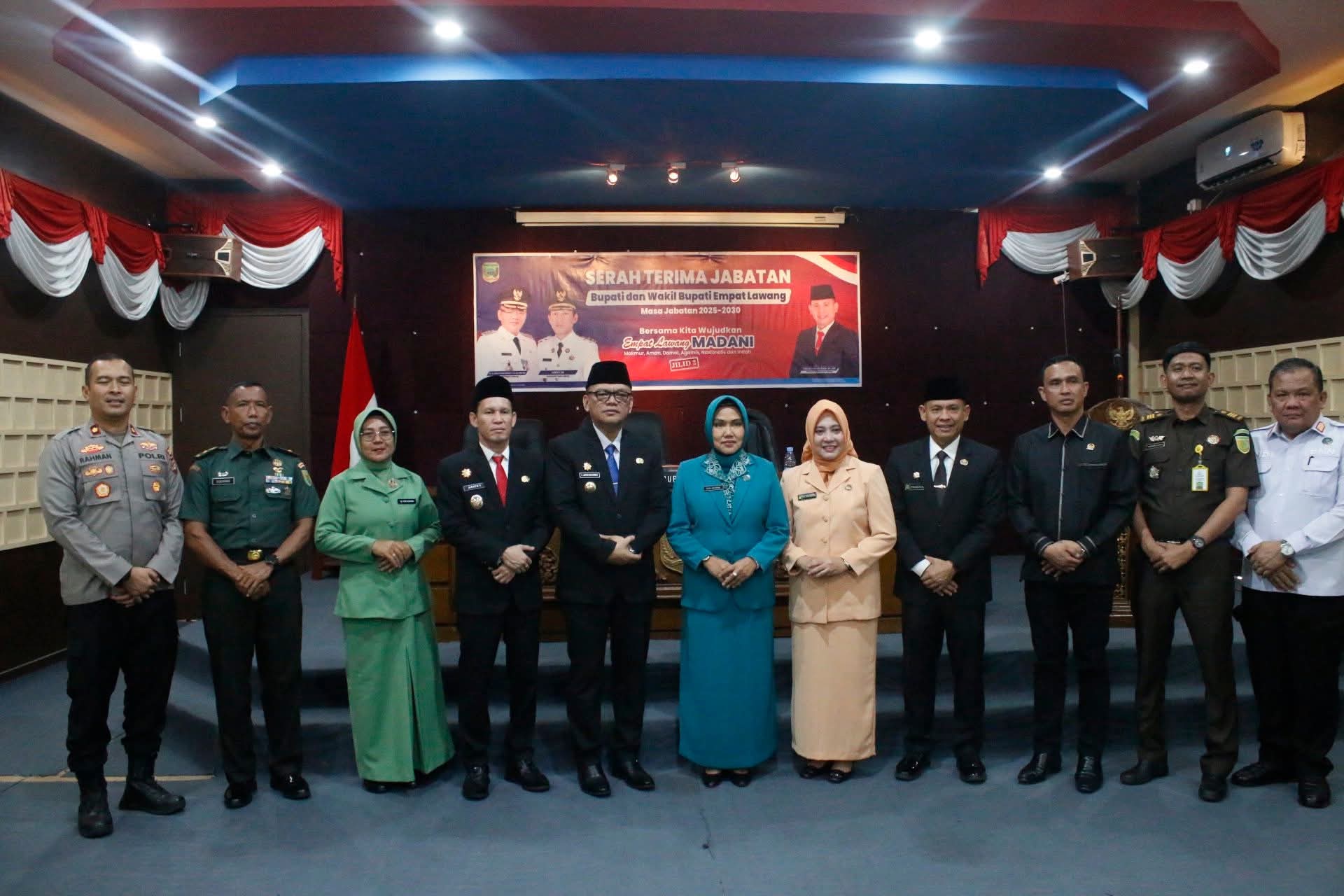 TEBARKAN – EMPAT LAWANG – Serah Terima Jabatan Bupati dan Wakil Bupati Empat Lawang Masa Jabatan 2025–2030 di Ruang Rapat Madani Sekretariat Daerah Empat Lawang, Senin, (30/6/ 2025)