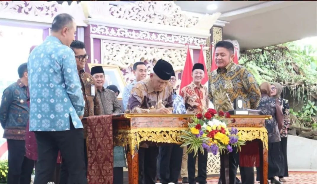TEBARKAN – PALEMBANG-Wakil Wali Kota Lubuk Linggau, H Rustam Effendi menghadiri penandatanganan nota kesepakatan antara Badan Pusat Statistik (BPS) dengan Kabupaten/Kota se-Sumatera Selatan (Sumsel), bertempat di Griya Agung Palembang, Jumat (12/9/2025).